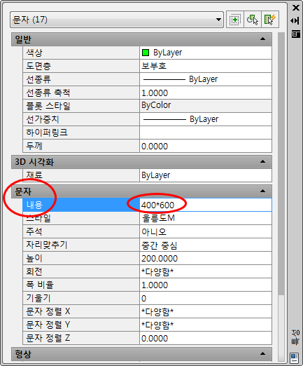 (문자 스타일, 높이 등 속성 변경까지 한 번에 가능)