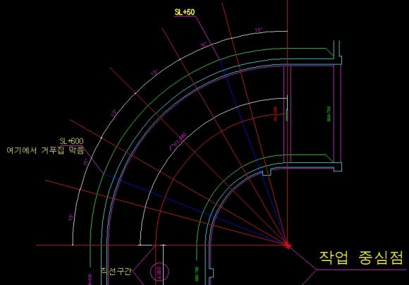 이 도면에는 곡선 램프의 작업 중심점이 존재합니다.