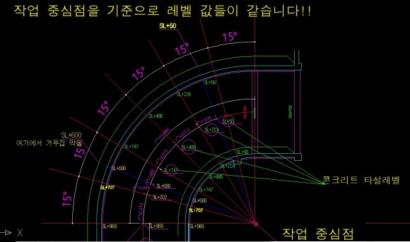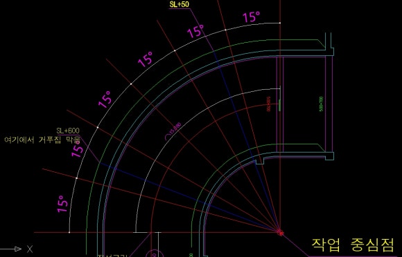지난 글에서 만든 곡선 램프 15° 각도 나누기 도면을