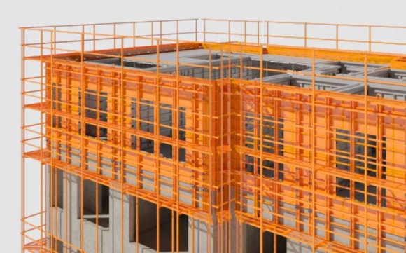 아파트 기준층 골조 공사에서 외부 벽체 거푸집 설치는 대부분 갱폼이 담당합니다.