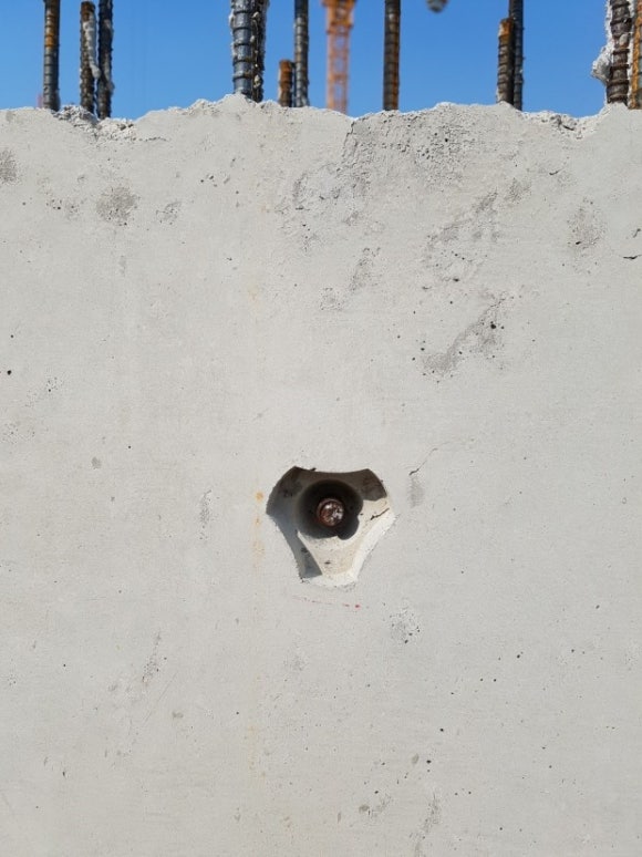 타설 후 앙카캡이 콘크리트에 묻혀 있거나 돌출되면 반드시 제거 또는 보정해줘야 합니다.